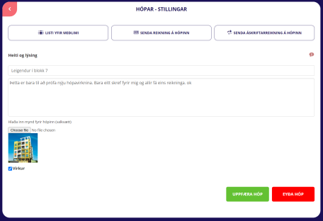 Nú hafa notendur fleiri og einfaldari möguleika fyrir umsjón á hópum viðskiptavina. Hægt er að bæta við viðskiptavinum og einnig senda reikninga beint úr hópa umsjón. Kerfið passar að fjarlægja úr hópum þegar viðskiptavinur er merktur sem óvirkur og passar að það sé til næg inneign þegar notandi reynir að senda reikning á hóp.